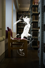 図書館に住む幽霊? 粗探しをしたら、後ろの壁の凸がひとつ。👍✨✨✨